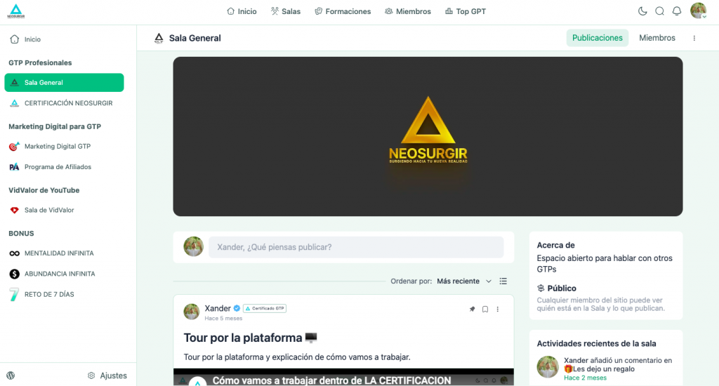El Instituto NeoSurgir® es la academia oficial de certificación GTP. Un espacio diseñado para profesionales que quieren dejar de trabajar en la superficie — y empezar a resolver desde el origen.